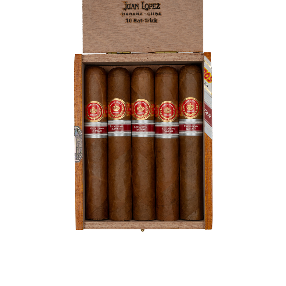 يقدم سيجار خوان لوبيز هات-تريك إديسيون ريجيونال قطر (2022) تجربة متوسطة إلى كاملة القوام، تبدأ بنكهات بارزة من خشب الأرز والتراب ولمسات زهرية رقيقة. ومع انكشاف الدخان، تظهر لمحات من الفول السوداني المحمص ولمسة من الفاكهة، مما يثري أساسه الجوزي ويضيف إليه تعقيدًا دقيقًا. أما في منتصفه، فتظهر لمسات خفيفة من الخشب والجلد، لتنتهي بنهاية سلسة ومرضية حيث تبقى المكسرات المحمصة ولمسة من التوابل عالقة في الفم.