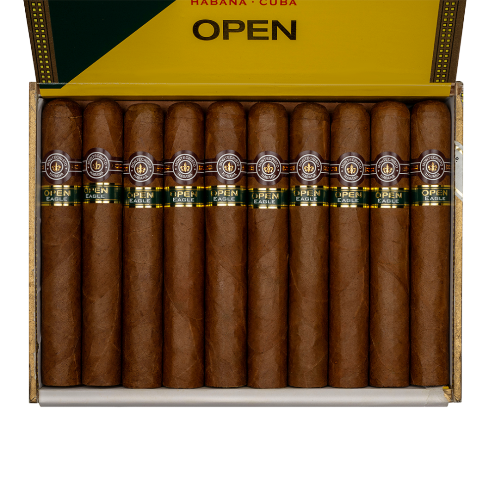 Montecristo Open Eagle is generally a medium cigar with a clean, modern profile designed for easy, daytime smoking. It often opens with soft notes of toasted tobacco, light cedar, and dry grass or hay, followed by a gentle creaminess on the palate. As it progresses, you may notice hints of nuts, subtle herbs, and a touch of citrus or honeyed sweetness, all wrapped in a smooth, cool smoke. The overall impression is fresh, balanced, and approachable, with a tidy, not-too-heavy finish.