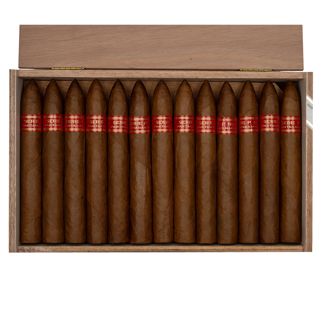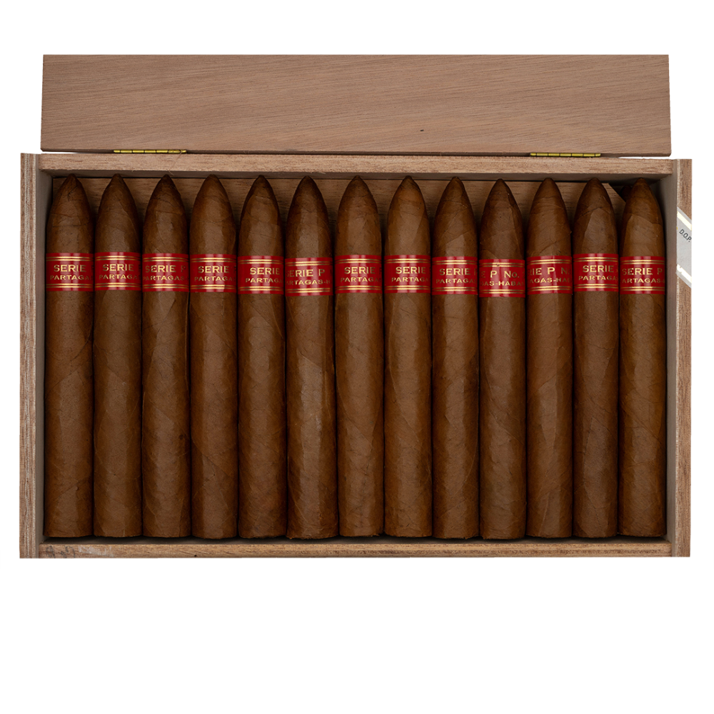 Partagás Serie P No. 2 is a classic, full-flavored pirámide that showcases the brand’s bold, earthy character with a bit more intensity and focus. The opening puffs usually bring dense notes of damp earth, black pepper, and toasted cedar, backed by a touch of leather. As it settles, the cigar often develops layers of dark roasted coffee, bitter cocoa, and a subtle sweetness that can hint at molasses or dried fruit. Through the middle and final thirds, the strength tends to build, with the pepper sharpening on the retrohale and the wood and earth deepening, while a faintly creamy texture keeps everything balanced. The finish is long, powerful, and satisfying, leaving impressions of espresso, charred oak, and that signature Partagás earthiness on the palate.